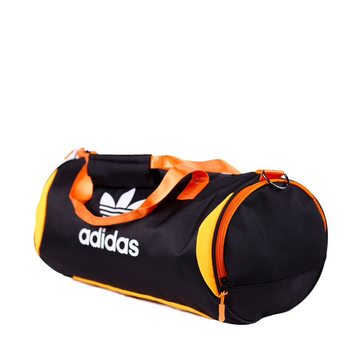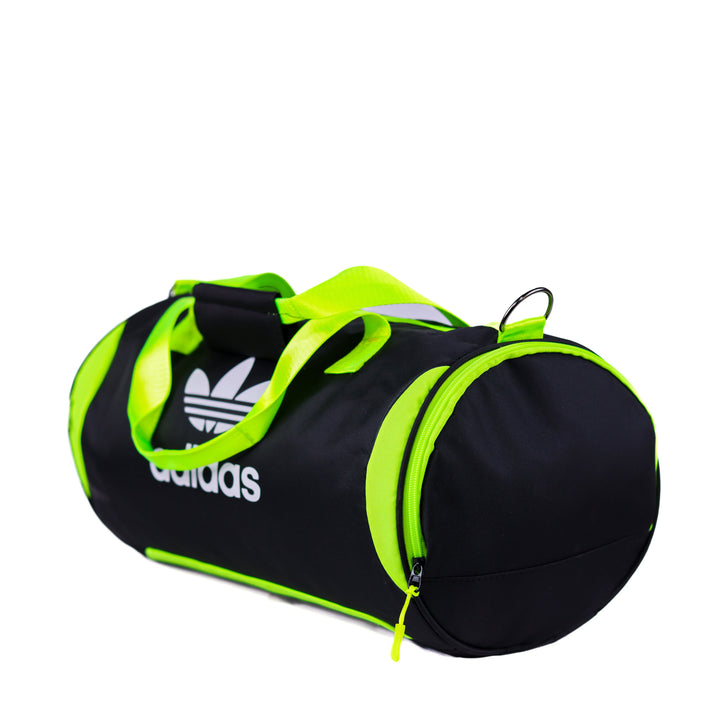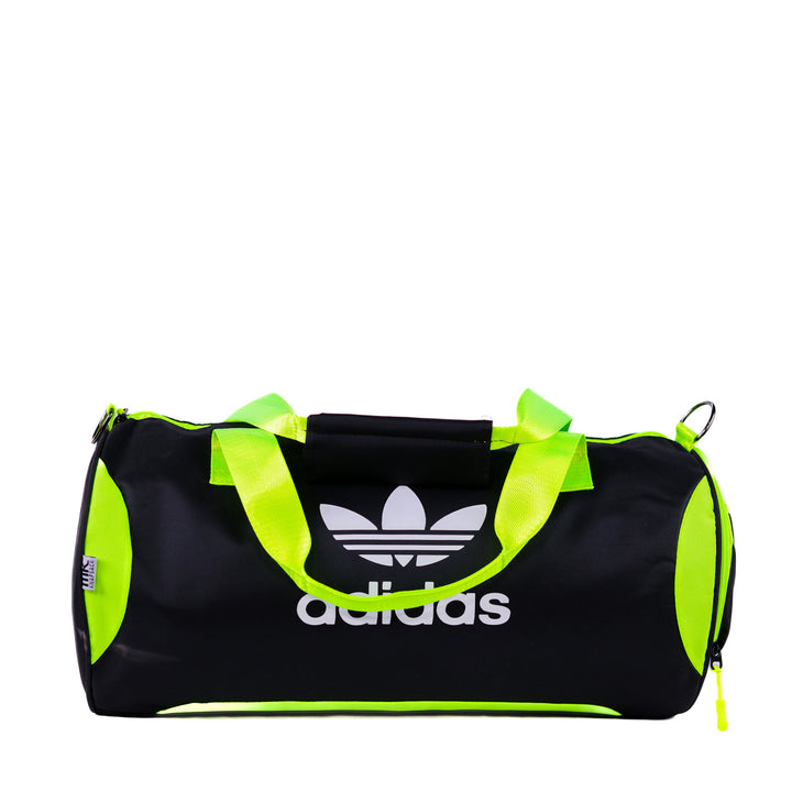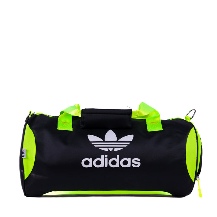 حقيبة أديداس دافل بتصميمها الرياضي الواسع وشعارها المميز. مصممة للاستخدام في الصالات الرياضية والسفر، خفيفة الوزن وعملية. أبعادها التقريبية: ٤٤×٢٤×٢٤ سم.