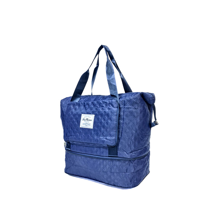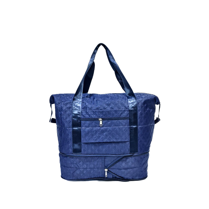 Lightweight quilted travel bag made of water-resistant nylon. Perfect for weekend trips, gym, or carry-on. The bag features an expandable bottom zipper to increase storage when needed.