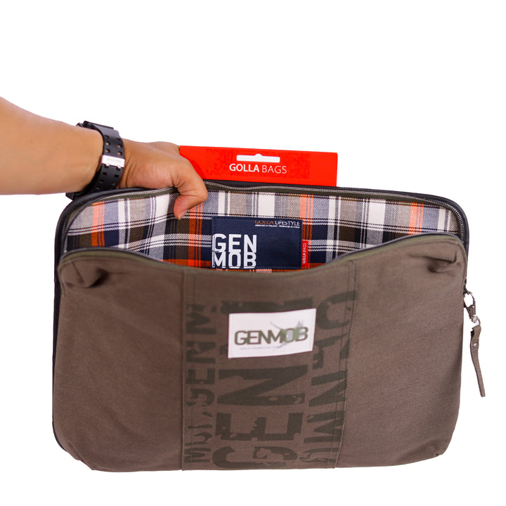 احمِ أجهزتك التقنية بأناقة مع حقيبة GENMOB للكمبيوتر المحمول من Golla Bags. مصممة لأجهزة الكمبيوتر المحمولة مقاس 16 بوصة، تتميز هذه الحقيبة القماشية المتينة بمظهر عصري أنيق مع بطانة داخلية منقوشة وسحاب إغلاق محكم. مثالية للمكتب أو السفر أو الاستخدام اليومي، تجمع هذه الحقيبة بين العملية والأناقة بكل سهولة.