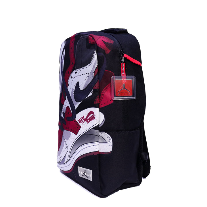 The Jordan Sneaker Art Backpack Grey offers durability, style, and practicality for everyday use or gym sessions. Designed with premium polyester fabric, this backpack features multiple zip compartments, adjustable straps, and a padded back for comfort.