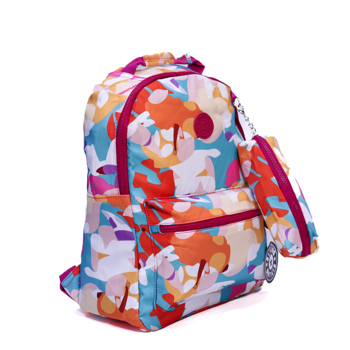 Kipling Abstract Print Backpack brings playful style and everyday practicality. Lightweight woven fabric with smooth zippers and a matching side pouch for small essentials.