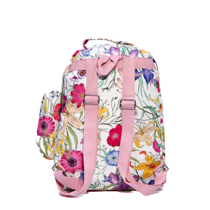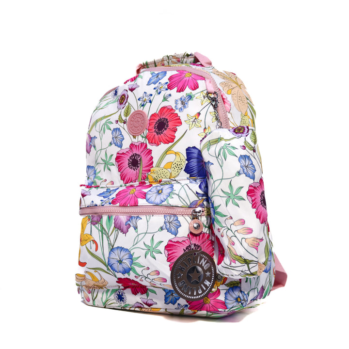 Kipling Floral Print Backpack brings playful style and everyday practicality. Lightweight woven fabric with smooth zippers and a matching side pouch for small essentials.