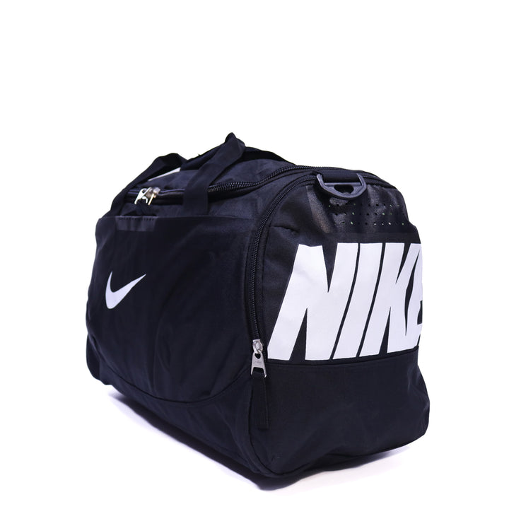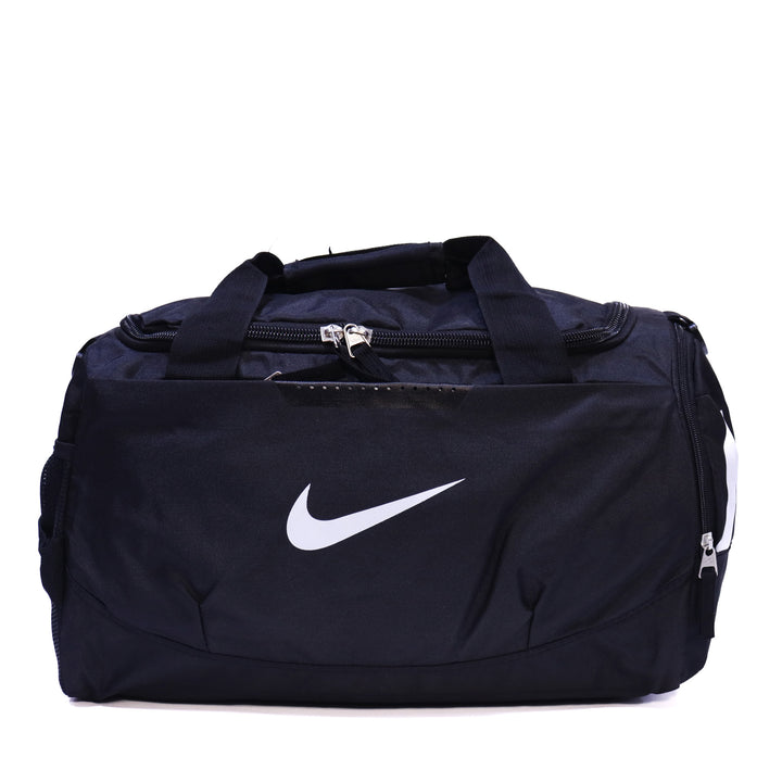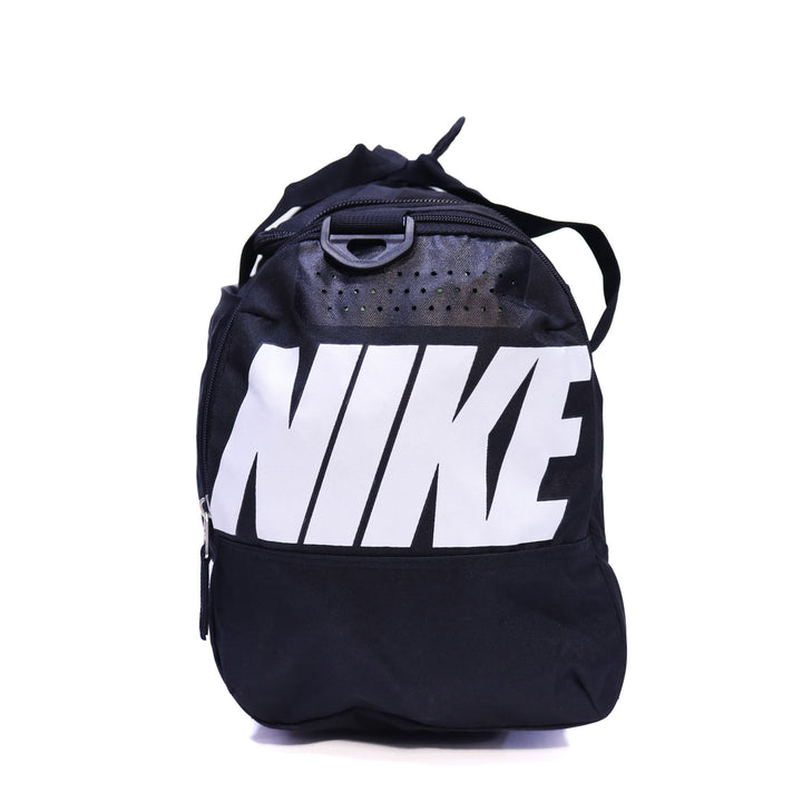 The Nike Duffel Gym Bag Black offers ample storage and a durable design for athletes and travelers. Built from sturdy polyester fabric, it includes multiple zip compartments, side pockets, and a padded adjustable shoulder strap.
