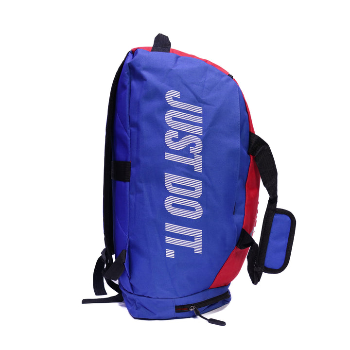 The Nike Just Do It Sports Duffel offers ample storage and a durable design for athletes and travelers. Built from sturdy polyester fabric, it includes multiple zip compartments, side pockets, and a padded adjustable shoulder strap.