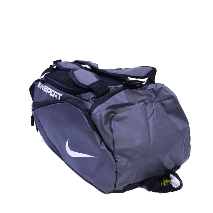 The Nike Sport Training Duffel offers ample storage and a durable design for athletes and travelers. Built from sturdy polyester fabric, it includes multiple zip compartments, side pockets, and a padded adjustable shoulder strap.