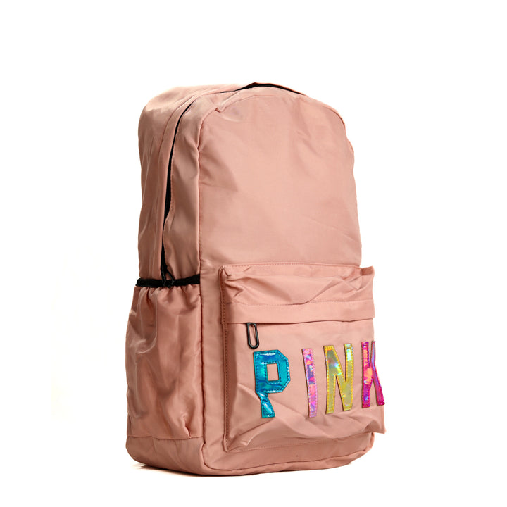 تألقي بإطلالة جريئة مع حقيبة الظهر الأنيقة هذه، المزينة بحروف "PINK" ثلاثية الأبعاد اللافتة. مثالية للمدرسة، أو السفر، أو الاستخدام اليومي، بتصميمها الواسع وجمالها العصري.