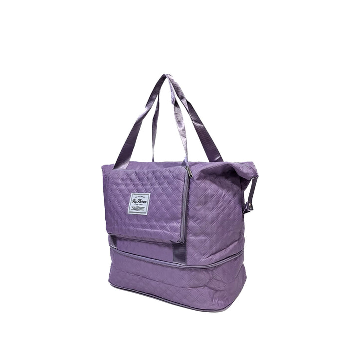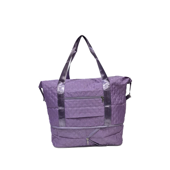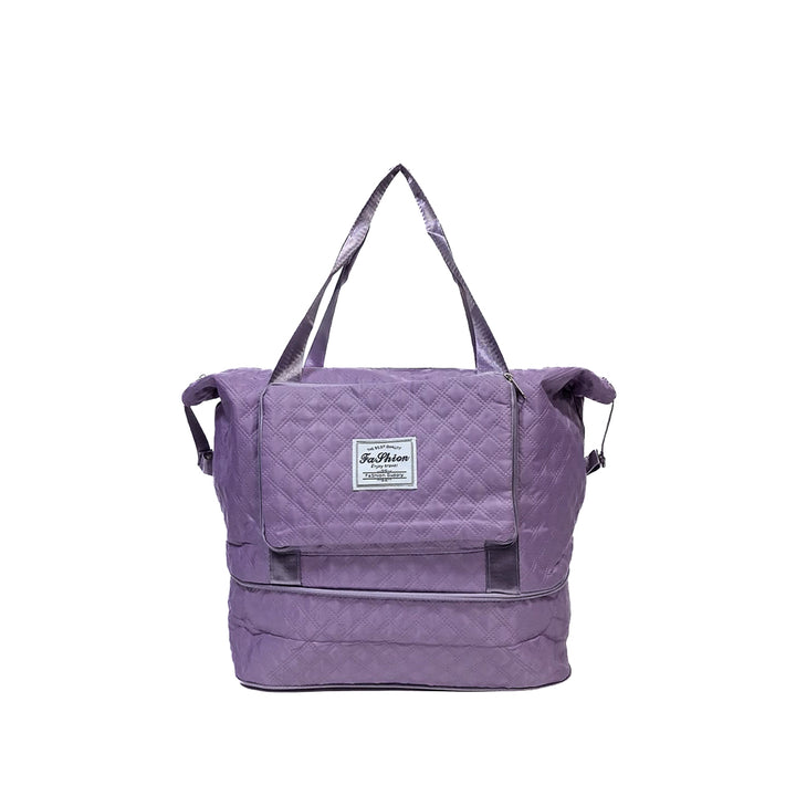 Lavender quilted travel bag with a soft, feminine look and expandable bottom section. Lightweight design makes it easy to carry for weekend getaways.