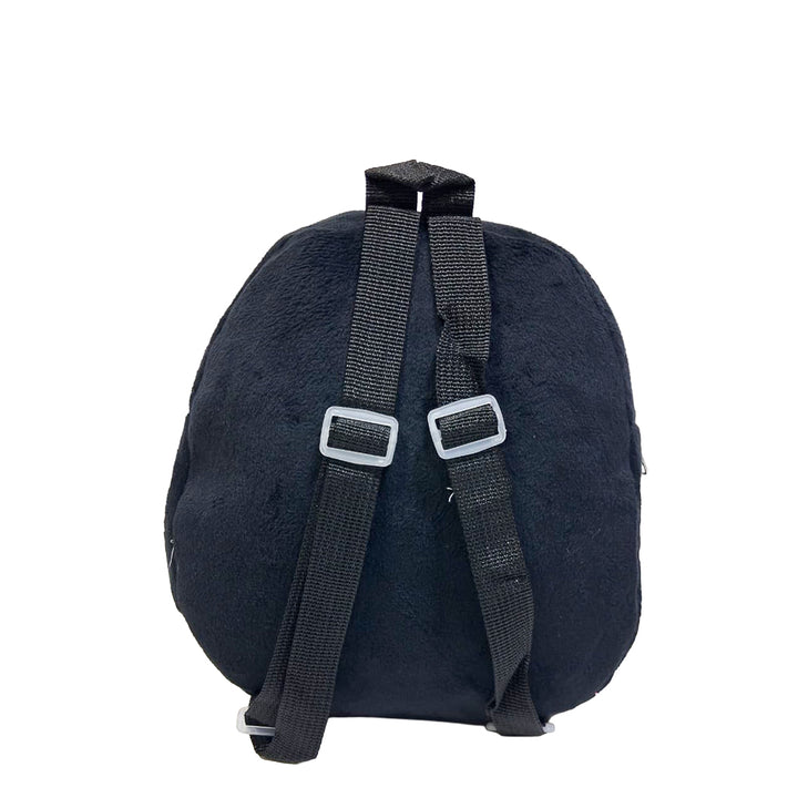 Black Sonic-style hero plush backpack with bright face embroidery, perfect for kids who love action characters. Approximate dimensions: 26 x 22 x 10 cm. Perfect size for nursery, kindergarten, or short outings.