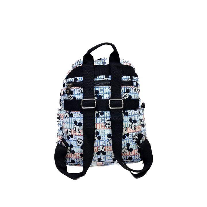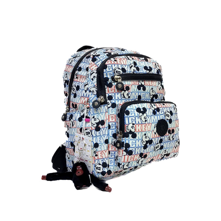 Stylish Kipling backpack with Mickey Mouse print. Features multiple zip compartments, adjustable padded straps, and water-resistant material. Perfect for school, travel, or daily use. Estimated size: 32 x 25 x 14 cm.