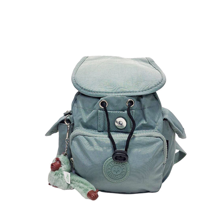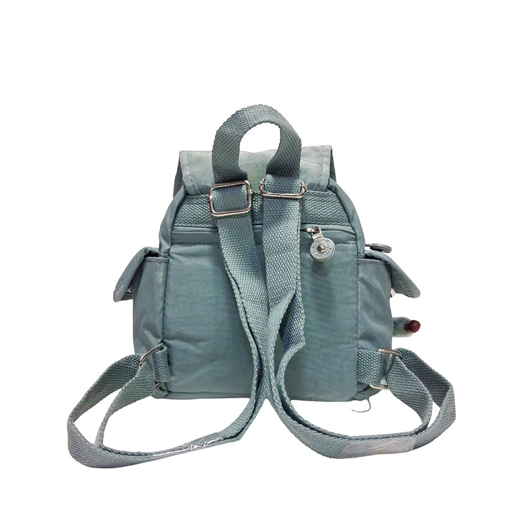 Compact flap backpack with padded back panel, front zipper pocket, and side compartments for neat storage. Approx. dimensions: 22 x 19 x 11 cm. Ideal for daily use, short trips, and keeping essentials organized.