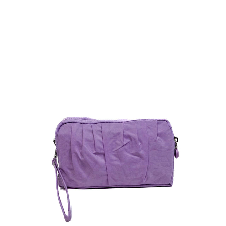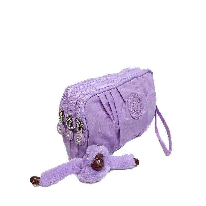 Pleated Crossbody Bag with Monkey Charm -lavender
