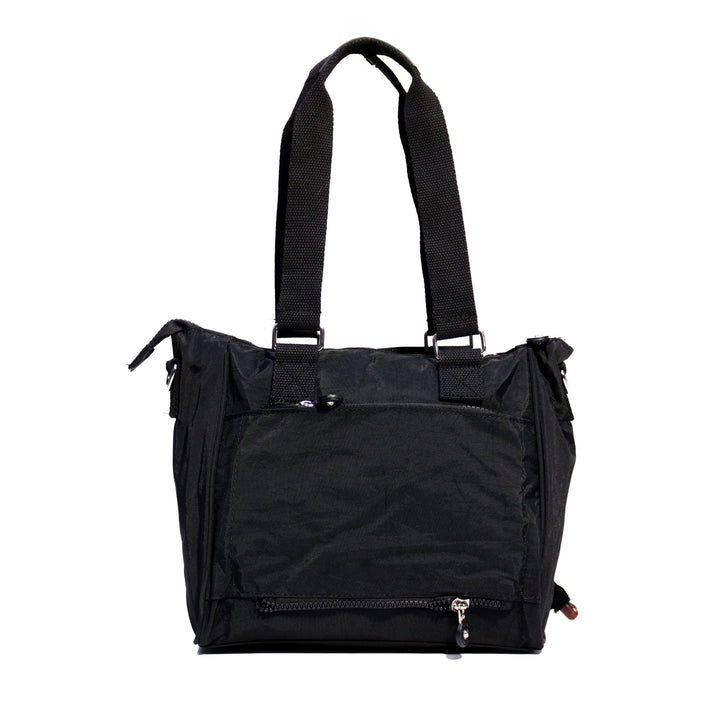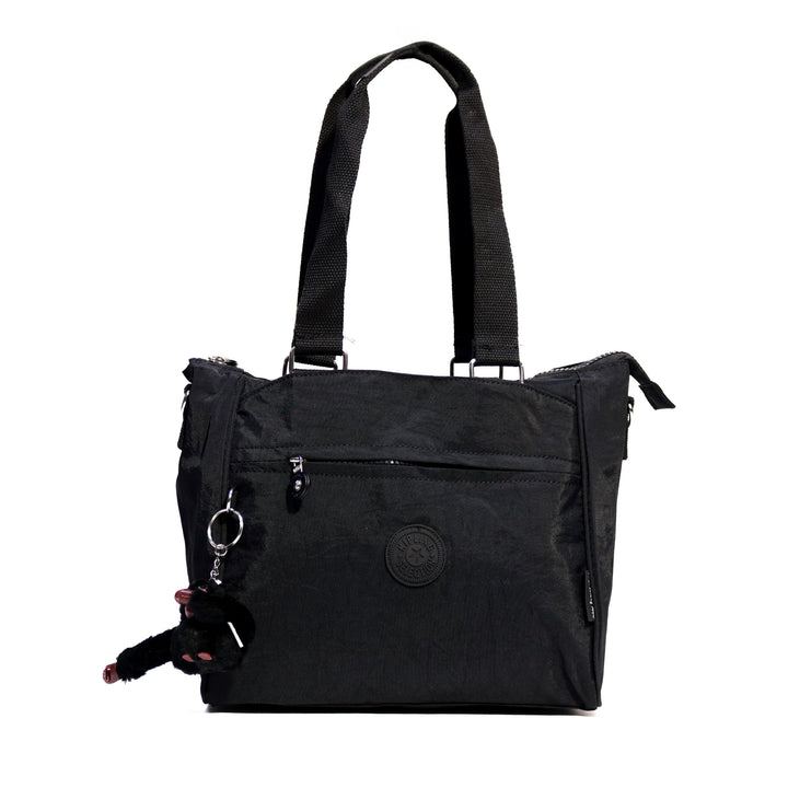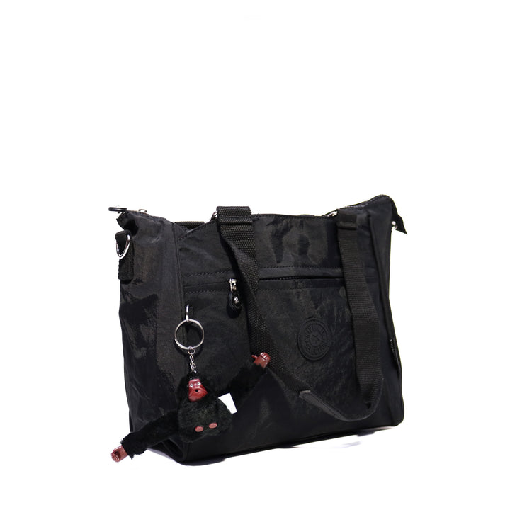 Classic black Kipling tote bag with spacious compartments and comfortable handles. Includes signature monkey keychain.