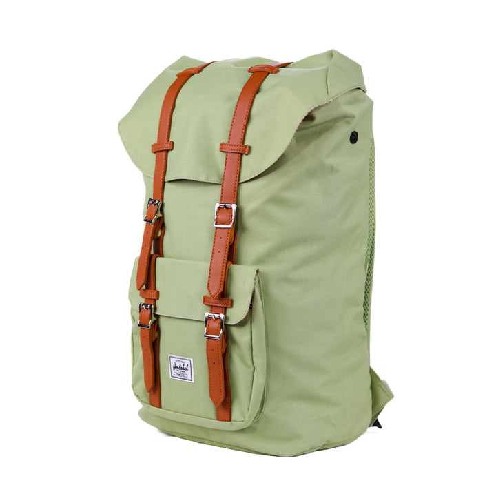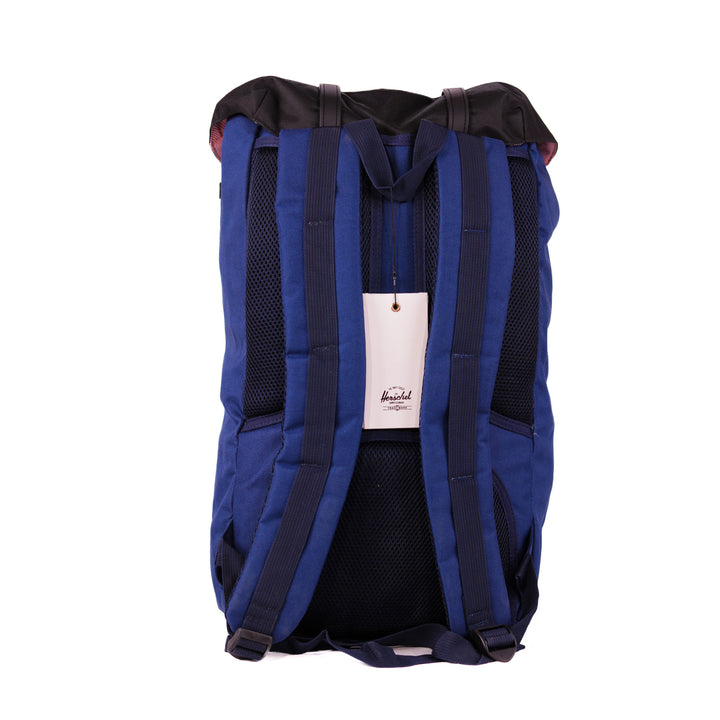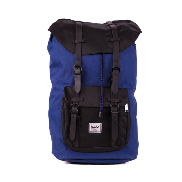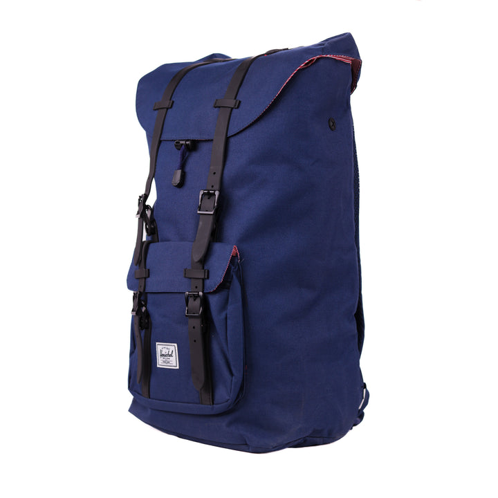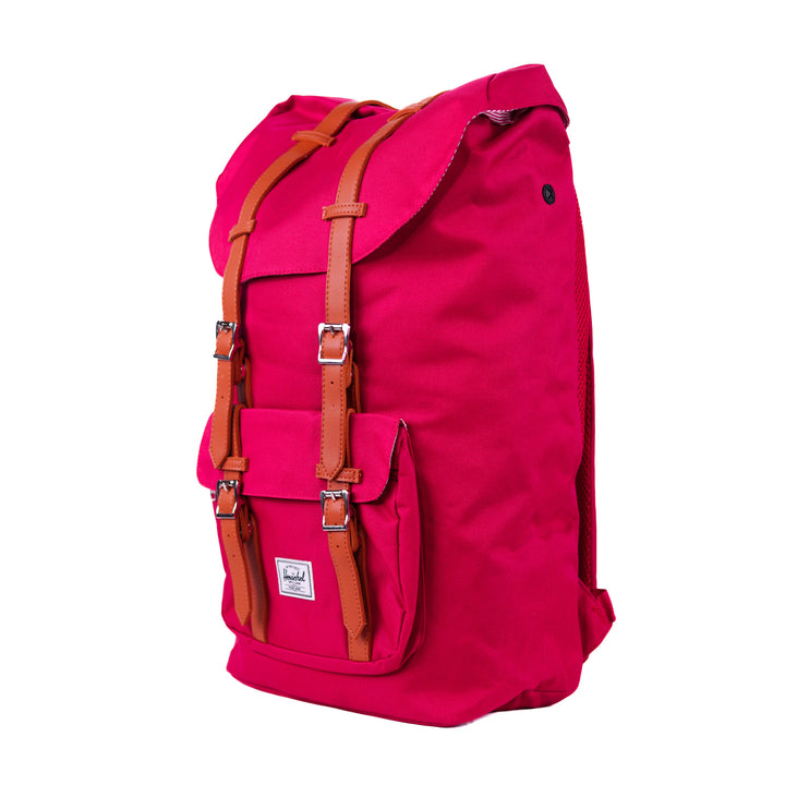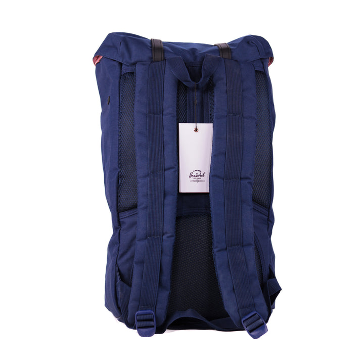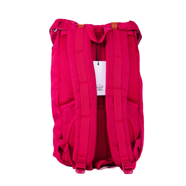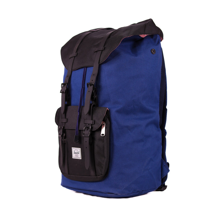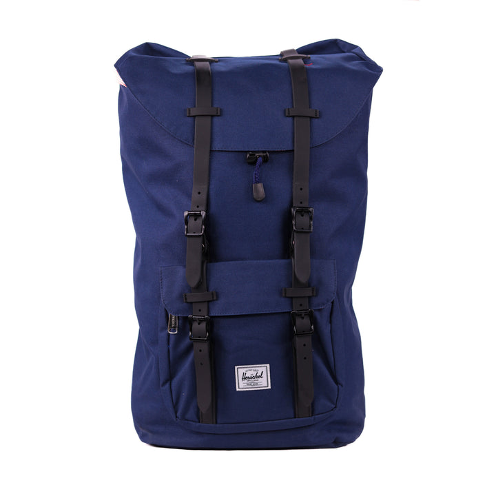 - Roll-top closure with dual buckle straps