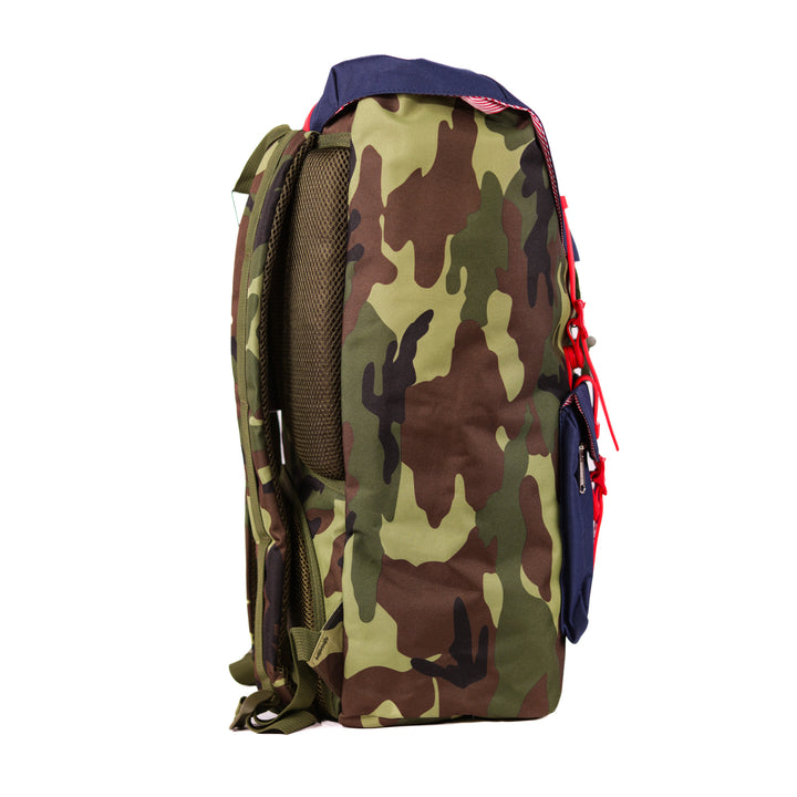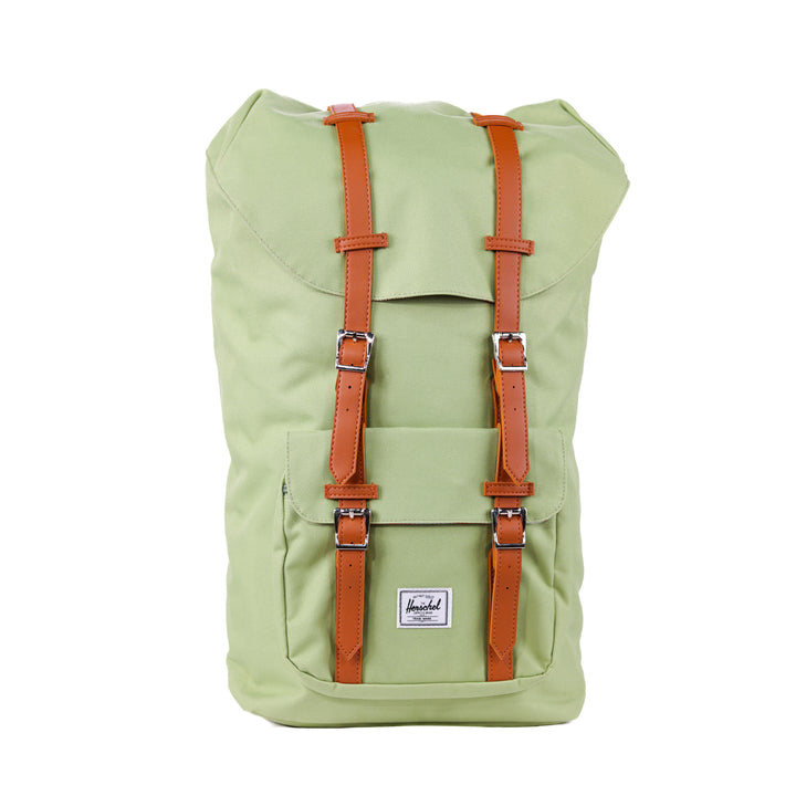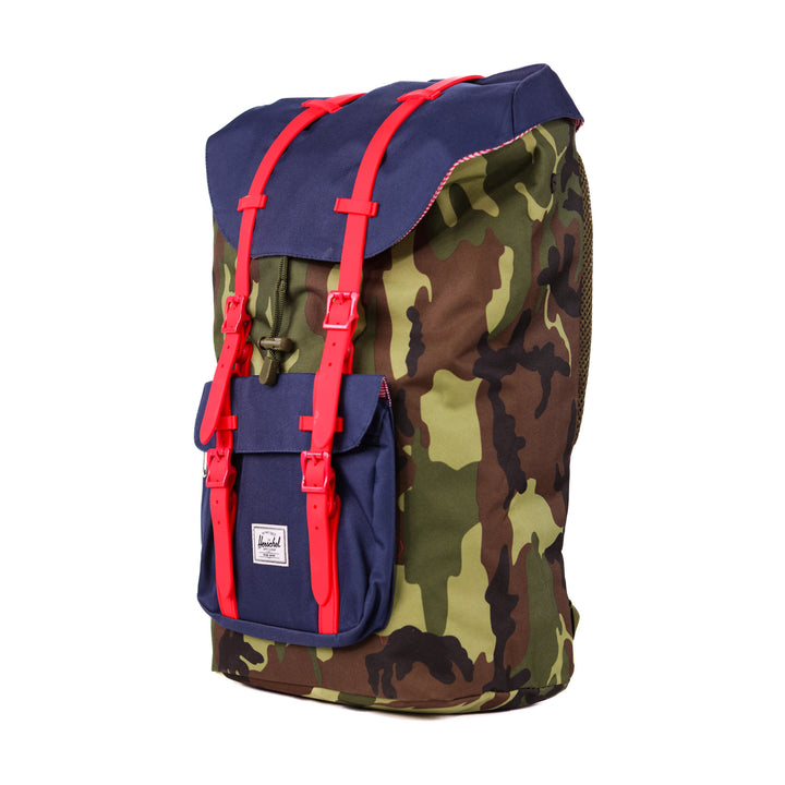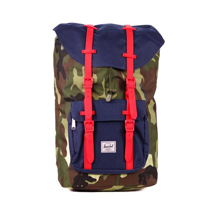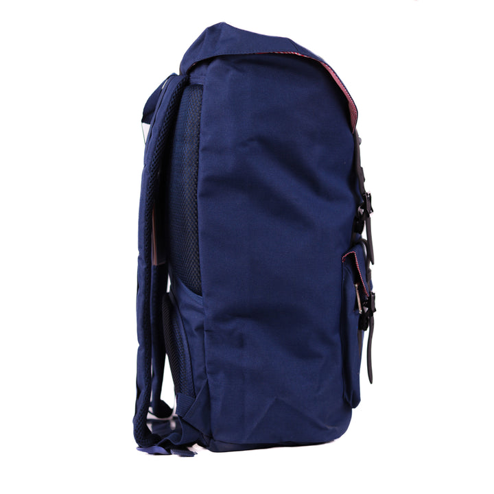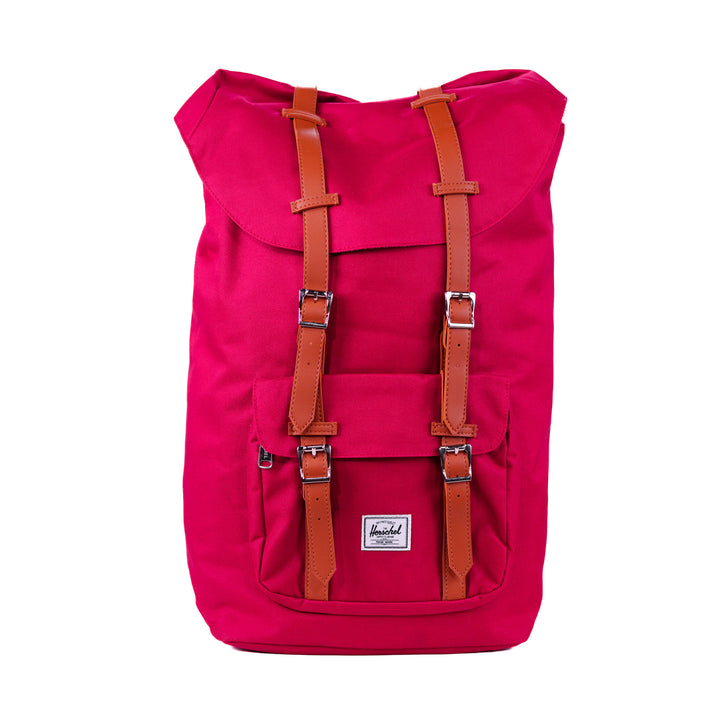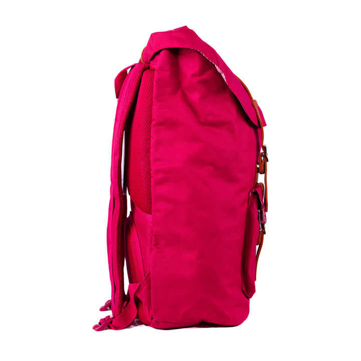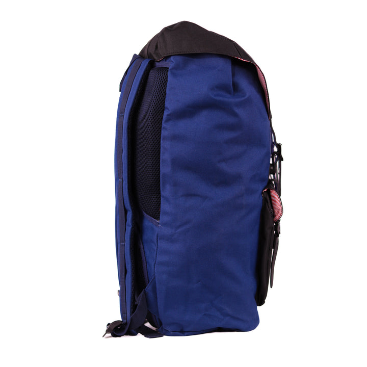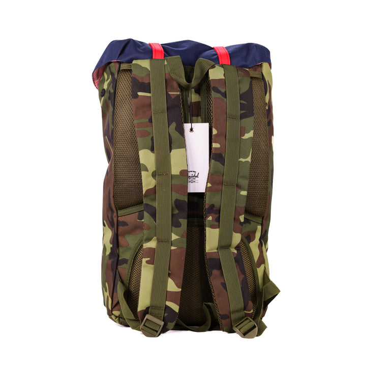 - Roll-top closure with dual buckle straps