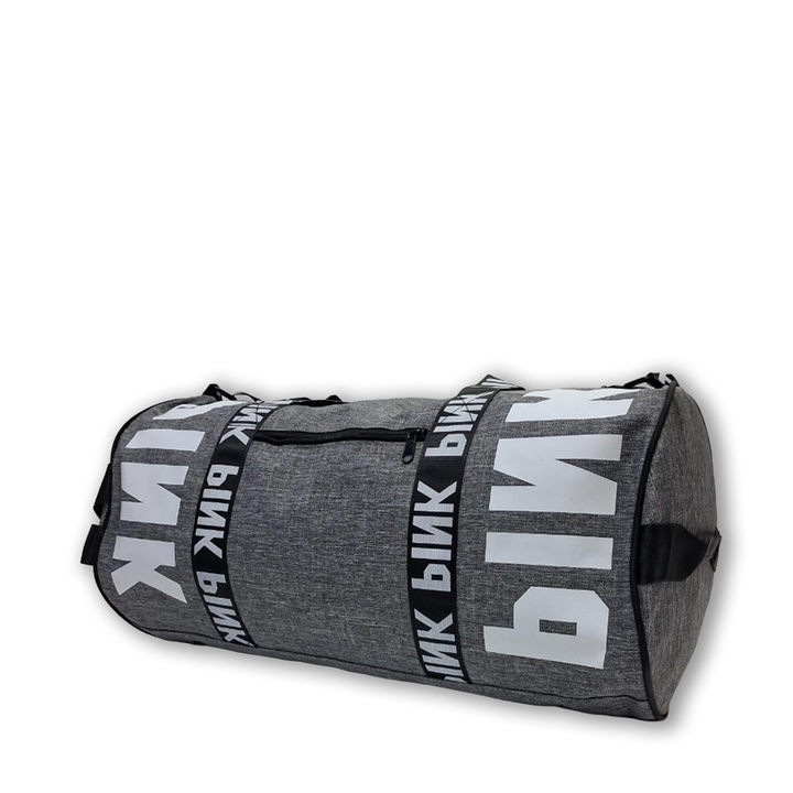 Modern gray PINK duffel with zipper pocket and side handle—organized storage for daily workouts or travel.