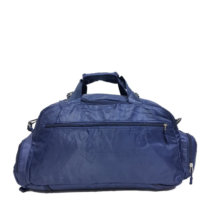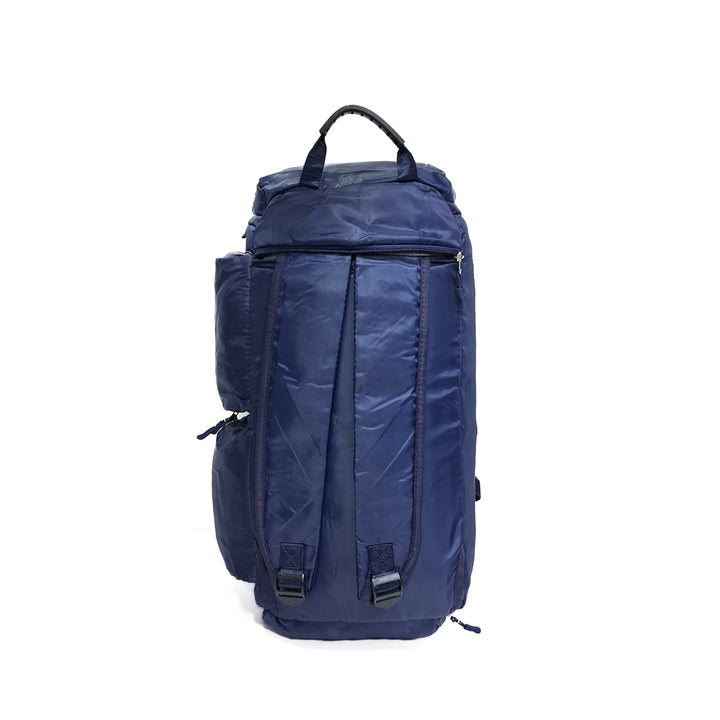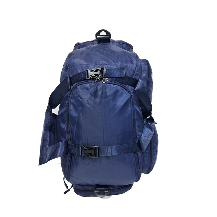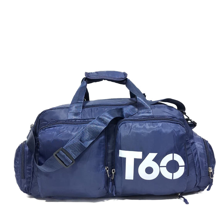 Navy T60 multipurpose duffel with convertible strap system and shoe space. Approximate dimensions: 52 x 28 x 25 cm. Ideal for gym sessions, sports, and weekend travel.